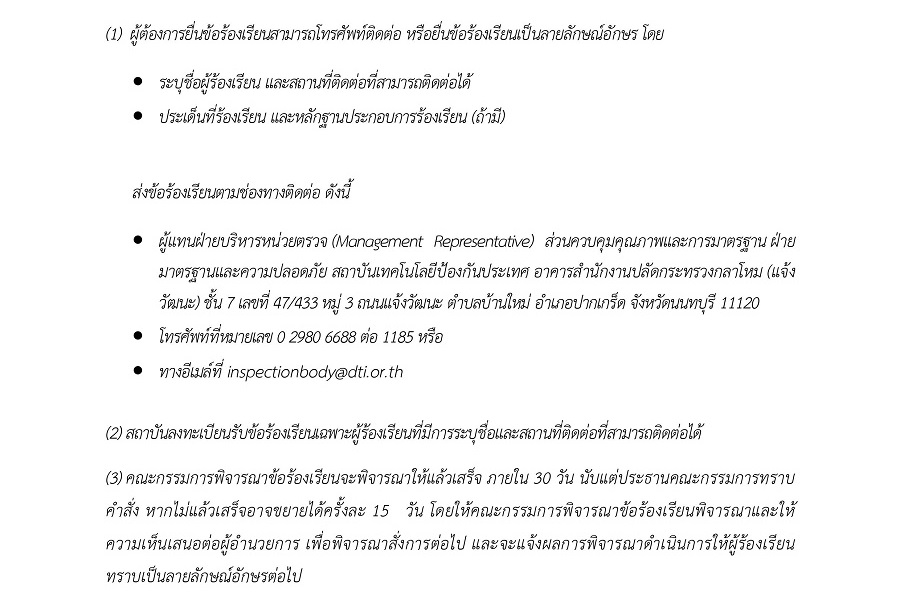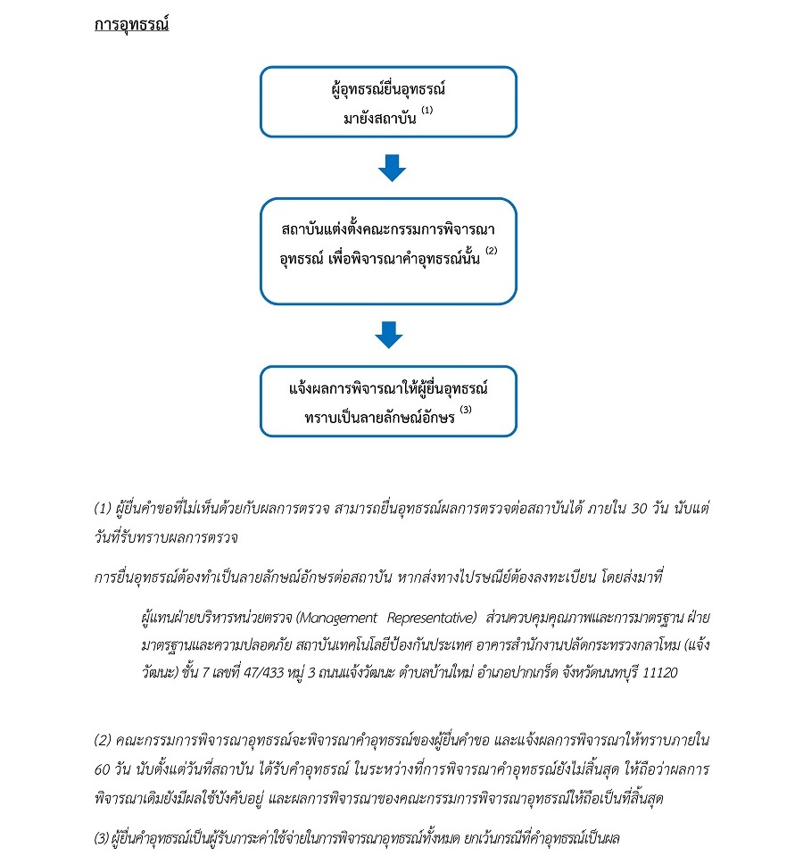 สถาบันเทคโนโลยีป้องกันประเทศมีความมุ่งมั่นและให้ความสำคัญด้านคุณภาพ ความเป็นกลาง และความโปร่งใสในการให้บริการตรวจผลิตภัณฑ์อุตสาหกรรมป้องกันประเทศ รวมถึงการจัดการปัญหาต่างๆ เพื่อให้การดำเนินการเป็นไปอย่างอิสระ และมีประสิทธิผล ในกรณีที่มีการร้องเรียนหรืออุทธรณ์ที่เกี่ยวข้องกับการให้บริการการตรวจดังกล่าว สถาบันได้กำหนดกระบวนการรับข้อร้องเรียนและอุทธรณ์ ดังนี้ |