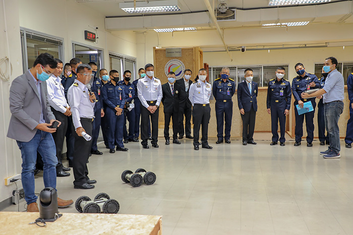พร้อมทั้งรับชมการสาธิตใช้งานหุ่นยนต์ในสถานการณ์จำลอง ณ ห้องปฏิบัติการมาตรฐานและทดสอบหุ่นยนต์