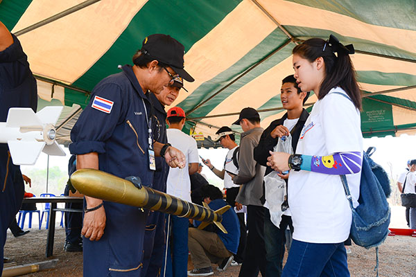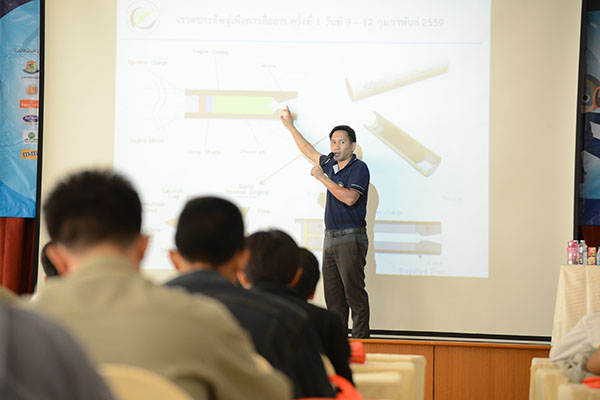 สทป. จัดกิจกรรมค่ายจรวดประดิษฐ์เพื่อการสื่อสาร ปี 2559 จากผลความสำเร็จของกิจกรรมค่ายวิทย์จรวดประดิษฐ์ที่จัดต่อเนื่องทุกปี มาเป็นเวลา 4 ปี ได้สร้างเยาวชนให้สนใจใฝ่รู้ด้านวิทยาศาสตร์และเทคโนโลยีที่เชื่อมโยงกับยุทโธปกรณ์ป้องกันประเทศ สร้างแรงกระตุ้นให้เยาวชนระดับมัธยมปลายให้สนในเป็นนักวิจัยนักประดิษฐ์ในวงกว้าง สถาบันเทคโนโลยีป้องกันประเทศ (องค์การมหาชน) ได้ต่อยอดองค์ความรู้และการประดิษฐ์คิดค้นสิ่งใหม่เป็นกิจกรรมค่ายจรวดประดิษฐ์เพื่อการสื่อสาร ซึ่งนอกจากจะเป็นการบูรณาความรู้ด้านจรวด แล้วยังต้องบูรณาการกับความรู้ด้านสื่อสารอิเล็คทรอนิกส์ และยังท้าทายศักยภาพความสามารถในการใช้ความรู้พัฒนาเป็นจรวดประดิษฐ์ที่สามารถส่งข้อมูลจากบนอากาศสู่ภาคพื้นดินเมื่อจรวดถูกยิงขึ้นฟ้าแล้ว โดยต้องเก็บค่าต่างๆ อาทิ อุณหภูมิ ความสูง ความเร่ง และบังคับทิศทางให้ตกมายังเป้าหมายที่กำหนด ซึ่งเป็นโจทย์ภารกิจจรวดประดิษฐ์เพื่อการสื่อสารปี 59 เป็นความท้าทายใหม่เพื่อการค้นคว้าพัฒนาขีดความสามารถการใช้งานจรวดประดิษฐ์ในมิติใหม่ โดยกลุ่มเป้าหมายเยาวชนสำหรับกิจกรรมค่ายปีนี้ คือ เยาวชนสายอาชีวศึกษาที่มีทักษะเชิงช่างอยู่แล้วให้นำองค์ความรู้สู่การพัฒนานวัตกรรม |