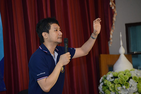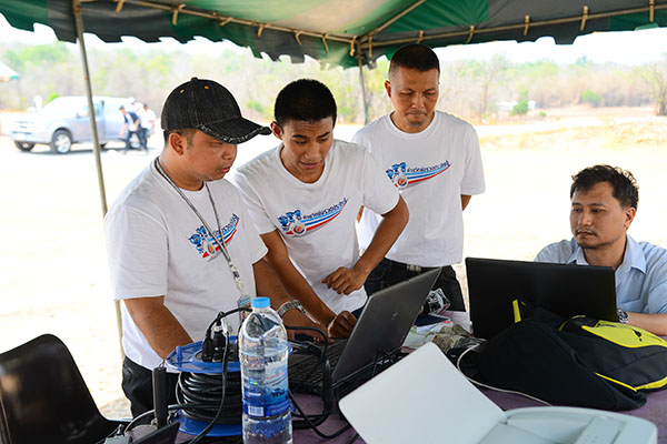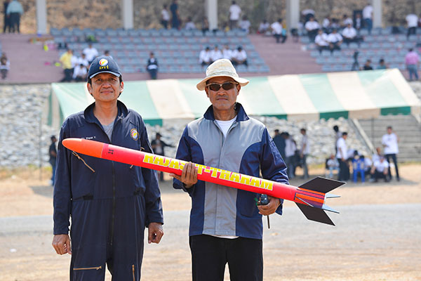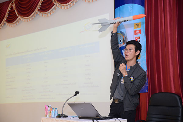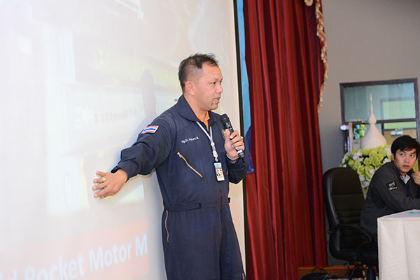 ยิงจรวดแข่งขันชิงเงินรางวัลและพิธีปิดค่าย ช่วงที่สามของกิจกรรมค่ายจรวดประดิษฐ์เพื่อการสื่อสารในปีนี้ เป็นกิจกรรมยิงจรวดฯ แข่งขันชิงเงินรางวัลและพิธีปิดค่ายจรวดประดิษฐ์เพื่อการสื่อสาร โดยจัดขึ้นในวันที่ 12 พ.ค. 59 ณ เขาพุโลน ศูนย์การทหารปืนใหญ่ ลพบุรี เช้าวันแข่งขัน นักศึกษาทั้ง 18 ทีมพร้อมอาจารย์ ทั้งเดินทางไปเองและไปกับรถบัสที่ สทป. จัดให้ เมื่อถึงสนามแล้วแต่ละทีมได้นำระบบสื่อสารของจรวดไปตรวจสอบการเชื่อมระบบสื่อสารกับคณะกรรมการ และส่งมอบจรวดให้พี่ๆ สทป. บรรจุดินขับจรวดพร้อมยิงได้ โดยชุดแรกจัดยิงจรวดของ สทป. ก่อน แล้วจึงยิงจรวดของ นศ. ไล่เรียงแต่ละวิทยาลัยตามหมายเลขที่จับฉลากได้ การแข่งขันดำเนินไปอย่างตื่นเต้น ทั้งเจ้าหน้าที่ สทป. ที่จุดยิงจรวด และทีม นศ. ที่เป็นเจ้าของจรวด ด้วยแรงใจที่ลุ้นว่าจรวดของตัวเองจะส่งข้อมูลสื่อสารจากบนอากาศลงมาได้ไหม จะบังคับระบบสื่อสารที่ลอยอยู่ในอากาศให้ลงมาใกล้เป้าหมายได้แค่ไหน และเสียงเชียร์จากเพื่อนๆ ต่างสถาบัน และที่ลุ้นมากกว่าใครคืออาจารย์วิทยาลัยที่รับผิดชอบ ว่าทีมวิทยาลัยของตนจะประสบผลสำเร็จแค่ไหน กับแรงกายแรงใจที่ทุ่มเทอย่างหนักตลอด 3 เดือนที่ผ่านมา และในที่สุดก็ได้ทีมชนะ 3 ทีม และสรุปภาพรวมการยิงจรวดแข่งขัน โดย พล.อ.ต. เจษฏา คีรีรัฐนิคม รอง ผอ. สทป. (3) |
