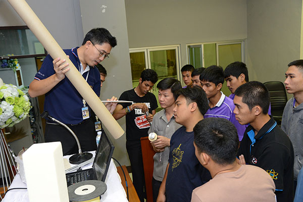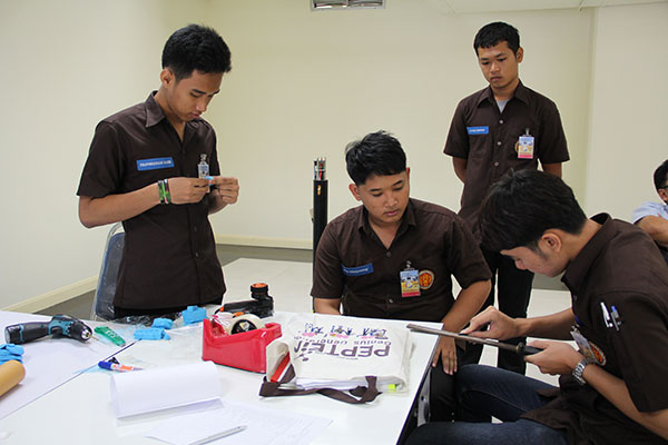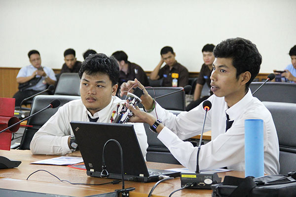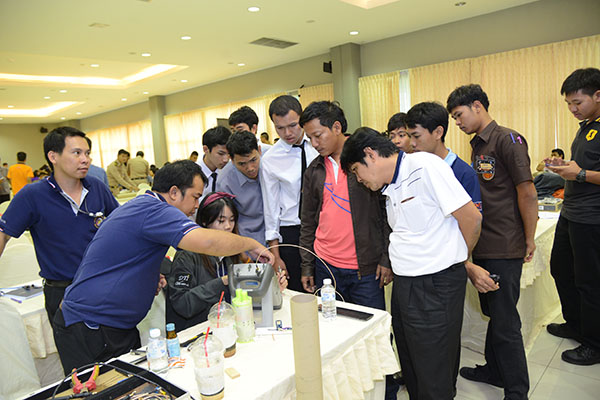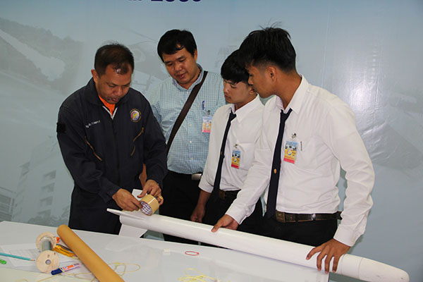 ช่วงที่ 3 จัดในวันที่ 11 – 12 พ.ค. 59 โดยจัดการนำเสนอ Detail Design Report ที่อาคาร สทป. และจัดการยิงทดสอบจรวดประดิษฐ์แข่งขันชิงเงินรางวัล ที่ศูนย์การทหารปืนใหญ่ จ.ลพบุรี ตกผลึกความรู้จากการลงมือปฏิบัติ จากความรู้สู่การปฏิบัติ ด้วยการลงมือประดิษฐ์จรวดติดระบบสื่อสาร เพื่อรวบรวมองค์ความรู้ให้ตกผลึกสำหรับการค้นคว้าและการถ่ายทอดต่อ ทั้งในวิทยาลัยและ สทป. จึงกำหนดให้ นักศึกษาทุกทีมต้องจัดทำ Detail Design Report และฝึกการนำเสนอ ซึ่งได้จัดไปเมื่อวันที่ 11 พ.ค. 59 ณ ห้องสยามปฐมพีพิทักษ์ โดย นศ. ต้องจัดทำรายงานเป็นรูปเล่มและทำสื่อนำเสนอต่อคณะกรรมการ ที่ประกอบด้วย นักวิจัย สทป. และอาจารย์พิเศษ จากอาชีวศึกษา รวม 8 ท่าน ใน Detail Design Report ให้รวบรวมและเรียบเรียงความรู้จากการปฏิบัติและอ้างอิงถึงทฤษฏีหรือหลักคิดที่ใช้ Detail Design Report ประกอบด้วย 15 หัวข้อ ภาพรวมของระบบ ระบบเซ็นเซอร์, ระบบหน่วงความเร็วและบังคับทิศทางของ Payload, ระบบโครงสร้างของ Payload, ระบบสื่อสารและจัดการข้อมูล, ระบบจัดการพลังงาน, ระบบ Software ควบคุมการทำงาน Payload, ระบบควบคุมภาคพื้น, การรวมระบบ, ระบบควบคุมภาคพื้น, การรวมระบบและทดสอบPayload, ระบบจรวด, ขั้นตอนการปฏิบัติภารกิจ, การตรวจสอบคุณลักษณะตามข้อกำหนด, การบริหารจัดการโครงการ แม้ว่าเนื้อหาความรู้ที่ นักศึกษาต้องจัดทำรายงานครั้งนี้จะไม่ง่ายเลย แต่นักศึกษษทุกทีมต่างก็ทุ่มเทกับการทำรายงานนำเสนออย่างเต็มที่ และน่าชื่นชมยิ่งที่หลายๆวิทยาลัยใช้ความคิดในมิติใหม่ๆ ในการพัฒนาจรวดประดิษฐ์ ทำให้คณะกรรมการได้ความรู้ใหม่ๆ ด้วยเช่นกัน และยังเห็นถึงศักยภาพการเป็นนักประดิษฐ์นวัตกรรมของเหล่า นักศึกษาสายอาชีวศึกษา ที่มีจุดเด่นในด้านทักษะเชิงช่าง คะแนนจากรายงานได้นำไปรวมกับคะแนนผลการยิงจรวดในวันต่อไปด้วย ซึ่งในวันนี้ นักศึกษาทุกทีมต่างได้นำจรวดที่ประดิษฐ์เสร็จแล้วมาให้พี่ๆนักวิจัยตรวจเช็คระบบจรวดให้เรียบร้อยก่อนการยิง |