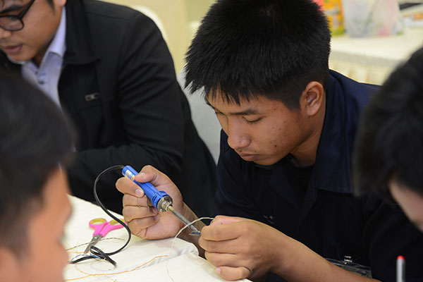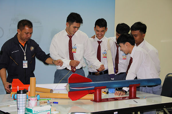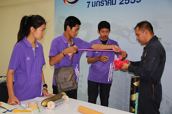 | กิจกรรมค่ายจรวดประดิษฐ์เพื่อการสื่อสาร ปี 59 จัดเป็น 3 ช่วง ช่วงที่1 จัดระหว่างวันที่ 9 – 12 ก.พ. 59 เป็นกิจกรรมให้ความรู้เชิงปฏิบัติการ ทั้งภาคทฤษฏีและภาคปฏิบัติ และกิจกรรมสันทนาการสร้างสรรค์สร้างทีมเวิร์ค จัดที่วิทยาลัยอาชีวศึกษาปทุมธานี โดยพิธีเปิดค่ายครั้งนี้ ได้รับเกียรติจาก พลเอก สมพงศ์ มุกดาสกุล ผอ. สทป. และ ดร.ชาญเวช บุญประเดิม รองเลขาธิการคณะกรรมการสำนักงานคณะกรรมการอาชีวศึกษา และได้รับเกียรติจากวิทยากรผู้เชี่ยวชาญจากภายในและภายนอก ได้แก่ ดร.สวัสดิ์ ตันติพันธุ์วดี อดีตนักวิจัยนาซ่า และนักวิจัย สทป. ร่วมเป็นวิทยากรให้ความรู้และประสบการณ์ ได้แก่ หลักการทางฟิสิกส์และปัจจัยเกี่ยวกับการเคลี่อนที่จรวด, ระบบขับเคลื่อน, กระบวนการผลิตจรวด, การออกแบบและสร้างจรวดประดิษฐ์, ระบบไมโครคอนโทรลเลอร์, ระบบ GPS, การประกอบระบบสื่อสารและระเบบเก็บข้อมูล SD Card เรียกว่าได้ความรู้ที่เกี่ยวข้องกับจรวดและระบบสื่อสารอย่างเต็มที่ และยังมีกิจกรรมสร้างสรรค์เพื่อสร้างการทำงานเป็นทีมโดยการให้แก้โจทย์ปัญหาต่างๆ อาทิ The Teamwork Tournament รวมระยะเวลากิจกรรม 4 วัน 3 คืน จากนั้นแต่ละทีมได้รับมอบอุปกรณ์ต่างๆ สำหรับสร้างจรวดประดิษฐ์ประกอบระบบสื่อสารอิเล็กทรอนิกส์ |
