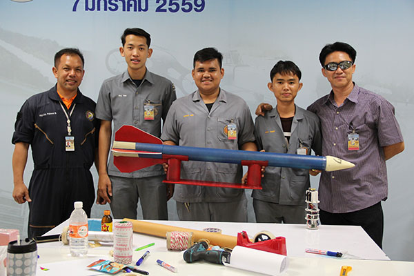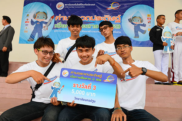 ผลการยิงจรวดประดิษฐ์แข่งขันชิงเงินรางวัล ค่ายจรวดประดิษฐ์เพื่อการสื่อสาร ปี 59 รางวัลที่ 1 วิทยาลัยเทคนิคสมุทรสาคร คะแนนรวมสูงสุด 84.67 ได้เงินรางวัล 20,000 บาท รางวัลที่ 2 วิทยาลัยเทคนิคสมุทรปราการ คะแนนรวม 78.94 ได้เงินรางวัล 10,000 บาท รางวัลที่ 3 วิทยาลัยเทคนิคนครปฐม = คะแนนรวม 77.94 ได้เงินรางวัล 5,000 บาท ผลแห่งความสำเร็จ กิจกรรมค่ายจรวดประดิษฐ์เพื่อการสื่อสาร ปี 59 เป็นกิจกรรมสร้างเสริมเยาวชนอาชีวะศึกษาที่มีความได้เปรียบในด้านทักษะฝีมือ ให้มีโอกาสได้เสริมความรู้วิทยาศาสตร์เทคโนโลยีทั้งด้านจรวดและระบบสื่อสาร ก่อเกิดนักคิดค้นและประดิษฐ์ผลงานใหม่เพื่อประโยชน์ต่อสังคม ซึ่งเยาวชนอาชีวะศึกษาได้ความรู้และประสบการณ์ใหม่ๆ เกี่ยวกับเทคโนโลยียุทโธปกรณ์สำคัญในการเสริมสร้างความมั่นคงให้แก่ประเทศ ได้เรียนรู้อย่างเชื่อมโยงทุกมิติ กล้าคิด กล้าทำ ในการบูรณาการความรู้ด้านจรวด ซึ่งถือว่าเป็นเรื่องใหม่สำหรับเยาวชนกลุ่มนี้ กับความรู้ด้านเทคโนโลยีการสื่อสารและทักษะเชิงช่างซึ่งนักศึกษาอาชีวะมีพื้นฐานดีอยู่แล้ว ไปพัฒนาจรวดประดิษฐ์เพื่อการสื่อสาร ที่ถือว่าเป็นเรื่องใหม่สำหรับสังคมไทย และนำมายิงทดสอบประลองประสิทธิผลและประสิทธิภาพการทำงานของจรวด และประสบความสำเร็จทุกทีม เป็นการจุดประกายการค้นคว้าต่อยอดความรู้สร้างนวัตกรรมให้แก่สังคม กิจกรรมค่ายจรวดประดิษฐ์เพื่อการสื่อสารปี 59 จึงเป็นส่วนหนึ่งที่ช่วยพัฒนาศักยภาพนักศึกษาอาชีวะให้เป็นนักประดิษฐ์คิดค้น สร้างศักยภาพและภาพลักษณ์ที่ดี ให้นักศึกษาอาชีวะเป็นบุคลากรที่มีฝีมือและมีค่าของชาติ |