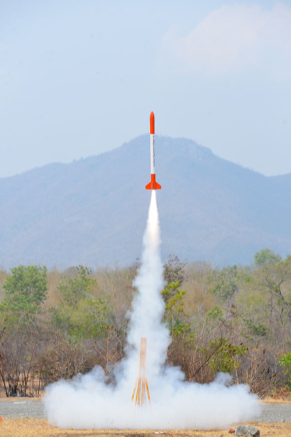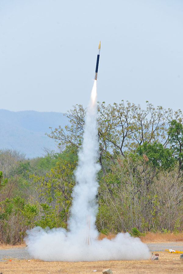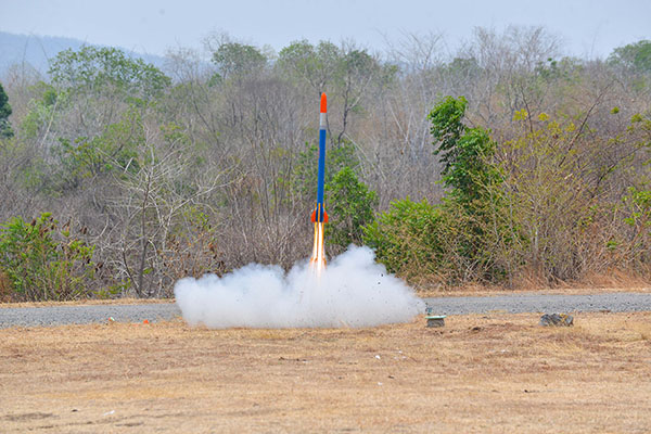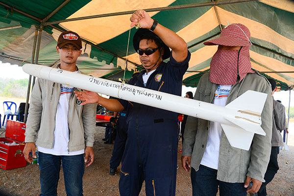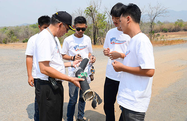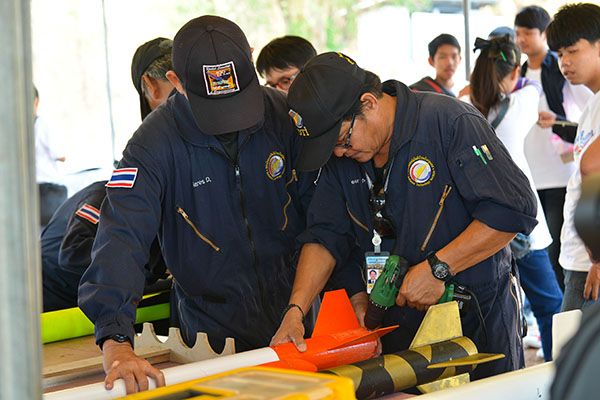 ช่วงที่ 2 นักศึกษาลงมือสร้างจรวดประดิษฐ์ประกอบระบบสื่อสาร และพบคณะที่ปรึกษา หลังจากลงมือปฏิบัติแล้ว ได้พบปัญหาอุปสรรคต่างๆ เพื่อช่วยกันแก้ปัญหาหลังลงมือปฏิบัติจริง ทั้งระบบจรวดและระบบอิเล็กทรอนิกส์ โดยครั้งที่ 1 ในวันที่ 15 มีนาคม 2559 จัดที่วิทยาลัยอาชีวศึกษาปทุมธานี โดยแบ่งเป็นกลุ่มพบที่ปรึกษานักวิจัยที่กำหนดให้เป็นพี่เลี้ยงประจำกลุ่ม สามารถสร้างความเข้าใจในความรู้นำไปพัฒนาจรวดประดิษฐ์ และจัดพบที่ปรึกษาอีกครั้ง ในวันที่ 18 เม.ย. 59 อาคาร สทป. เมืองทองธานี ให้นักวิจัย สทป. ตรวจเข็คความสมบูรณ์ของจรวดประดิษฐ์ จากนั้นได้จัดพา นศ. และอาจารย์ที่ปรึกษา นำจรวดประดิษฐ์ไปทดลองยิง เมื่อวันที่ 19 เม.ย. 59 เพื่อให้ทุกทีมได้เห็นผลงานของตนเองและเอาไปปรับปรุงก่อนที่จะยิงแข่งขันชิงเงินรางวัล |