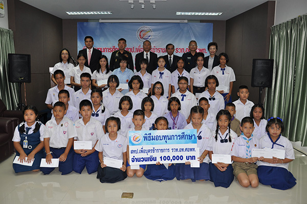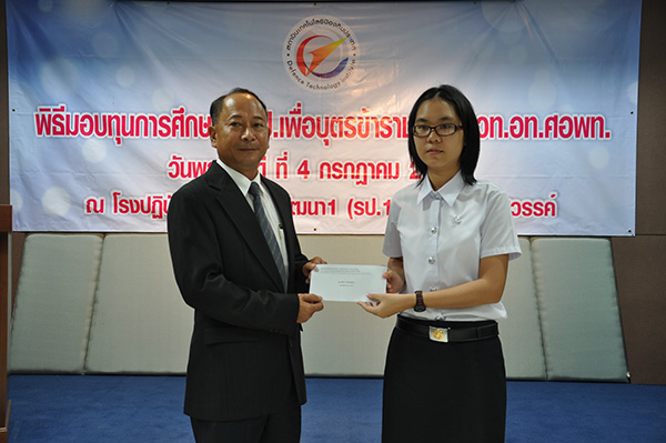 จัดมอบทุนการศึกษา สทป. เพื่อบุตรข้าราชการโรงงานวัตถุระเบิดทหาร ตามโครงการความรับผิดชอบต่อสังคมของ สทป. โดยประธานกรรมการบริหารสถาบัน พลอากาศเอก พงศธร บัวทรัพย์ เป็นประธานมอบทุนการศึกษา พร้อมด้วย รองผู้อำนวยการสถาบัน พลเอก สมพงศ์ มุกดาสกุล และ ผู้อำนวยการ โรงงานวัตถุระเบิดทหาร ศูนย์การอุตสาหกรรมป้องกันประเทศและพลังงานทหาร พลตรี ชวลิต สาลีติ๊ด โดยได้มอบทุนการศึกษาระดับประถมศึกษา ระดับมัธยมศึกษา ระดับอาชีวศึกษาและอุดมศึกษา รวม 35 ทุนเป็นจำนวนเงิน 100,000 บาท เพื่อสร้างโอกาสทางการศึกษาให้แก่เยาวชนในท้องถิ่น เพื่อเสริมสร้างรากฐานความมั่นคงของชาติในอนาคต เมื่อวันที่ 4 กรกฎาคม 2556 ณ อาคารสำนักงานโรงปฏิบัติการวิจัยและพัฒนา สทป. จ.นครสวรรค์ |
