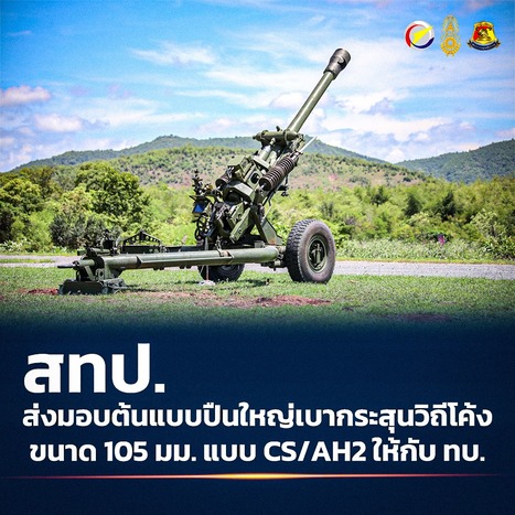 สทป. ส่งมอบต้นแบบปืนใหญ่เบากระสุนวิถีโค้ง ขนาด 105 มม. แบบ CS/AH2 ให้ กองทัพบก นำไปใช้งาน (วันที่ 13 พฤศจิกายน 2568)