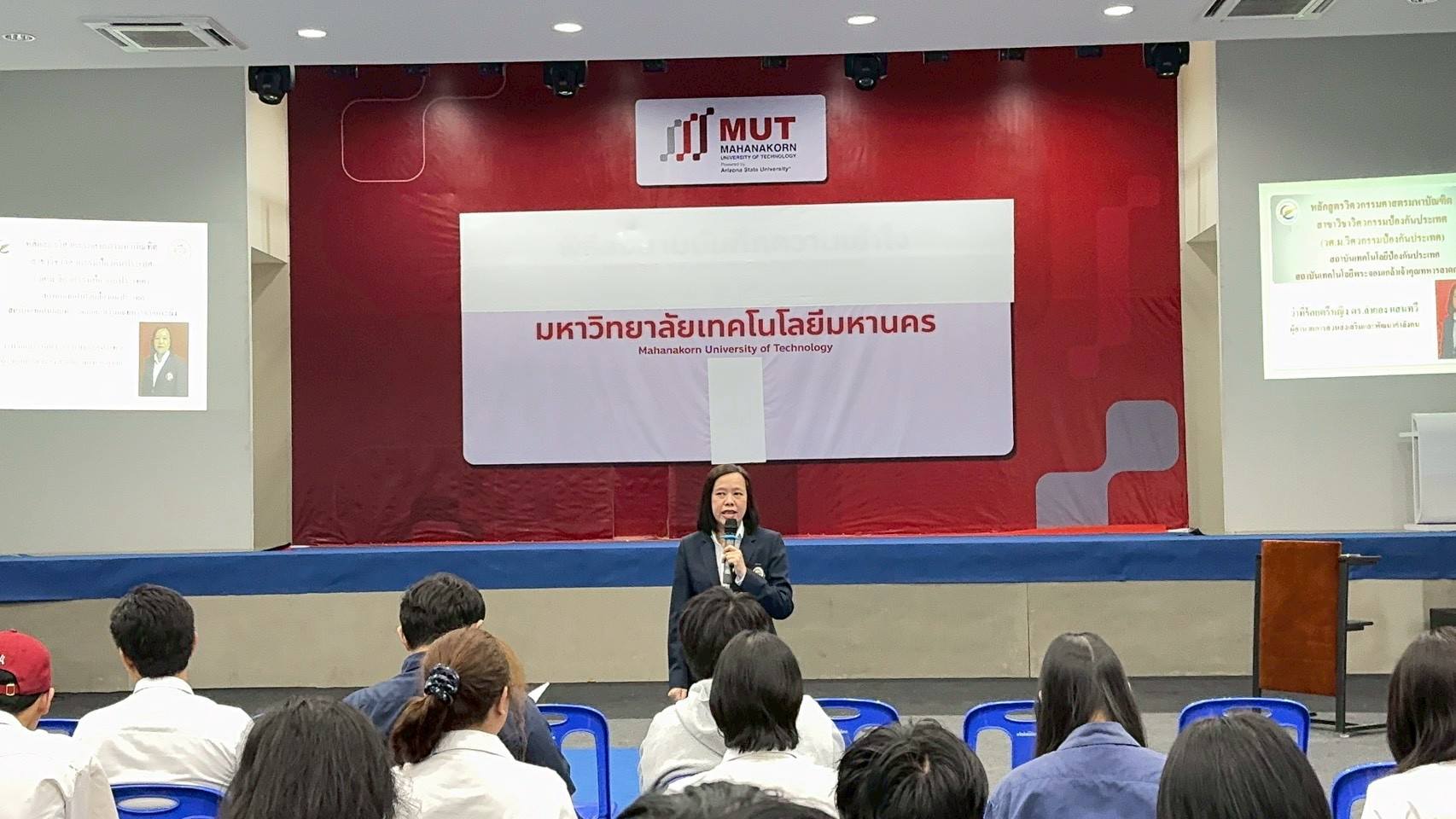 10 ก.พ. 69 ว่าที่ร้อยตรีหญิง ดร.ลำยอง แสนทวี ผู้อำนวยการส่วนส่งเสริมและพัฒนากำลังคน พร้อมคณะ ได้บรรยายแนะนำสถาบันเทคโนโลยีป้องกันประเทศ หลักสูตรวิศวกรรมป้องกันประเทศ