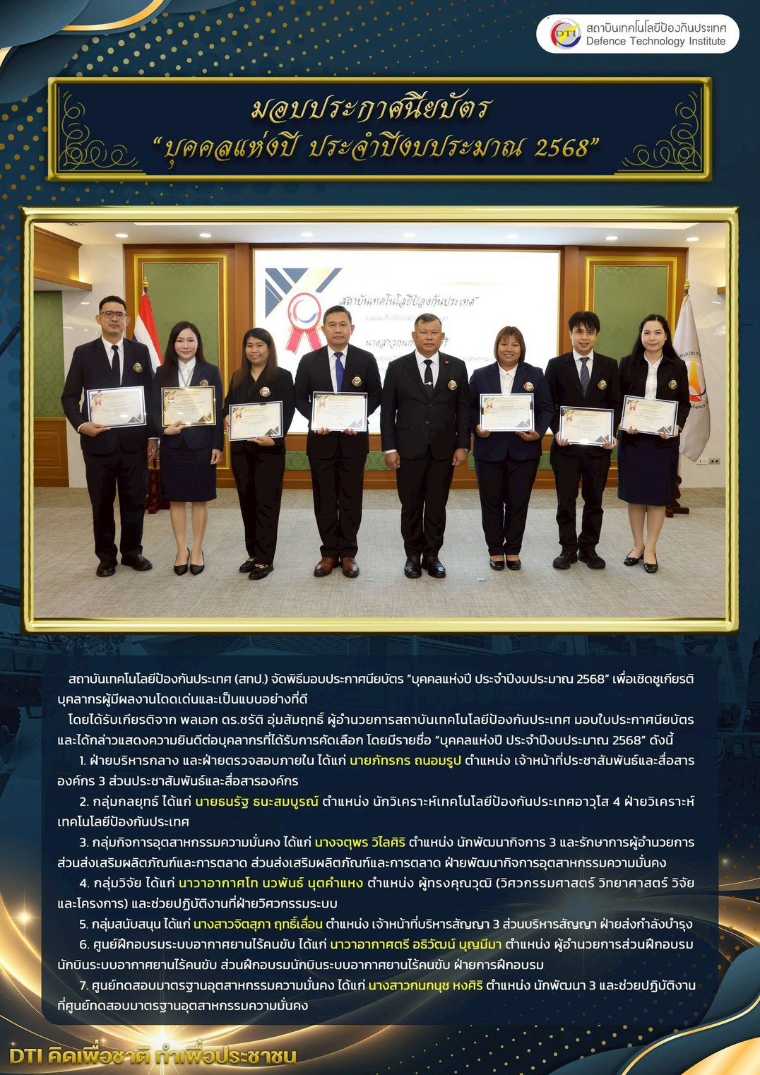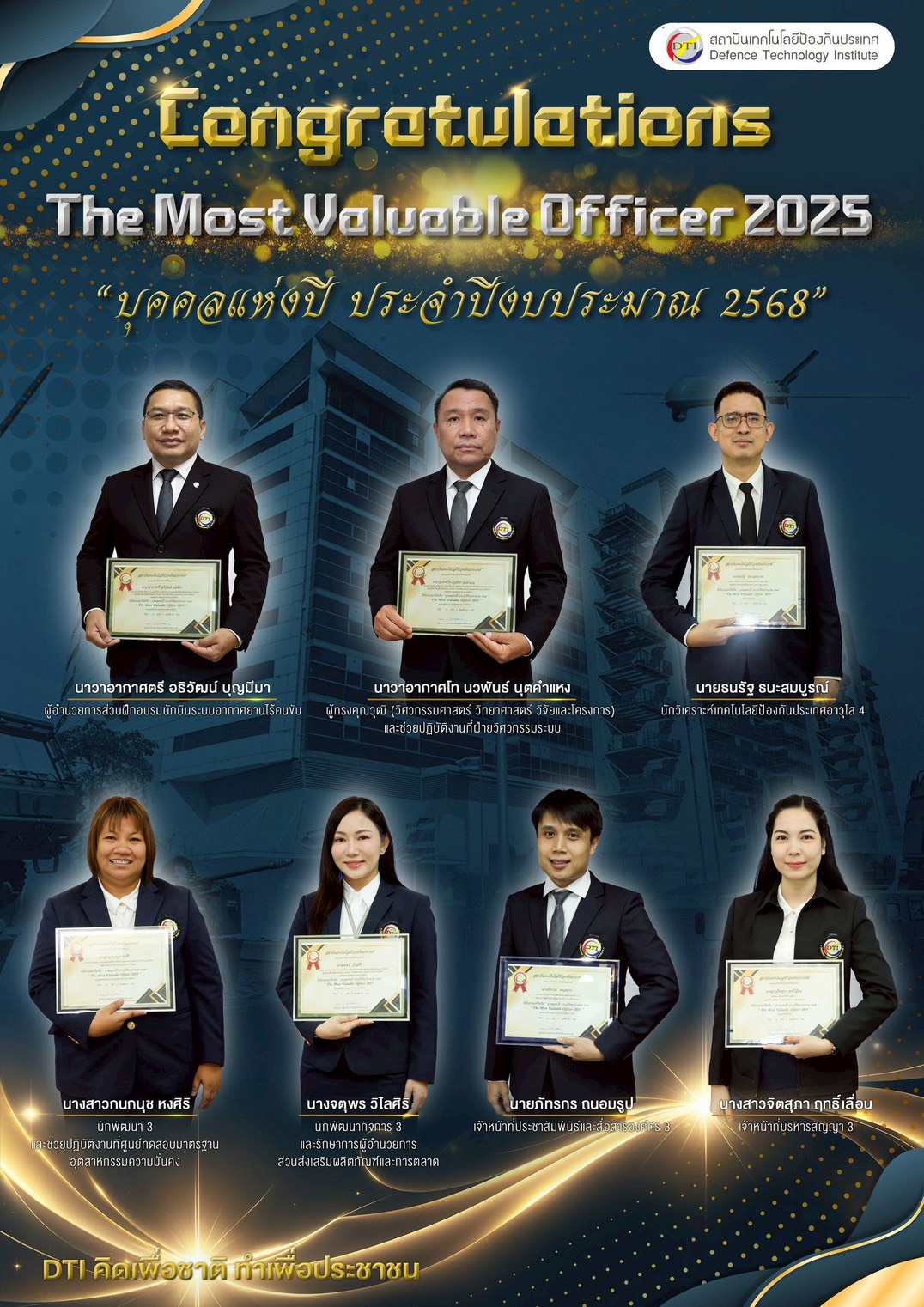 Defence Technology Institute Congratulations The Most Valuable Officer 2025 "บุคคลแห่งปี ประจำปีงบประมาณ 2568"