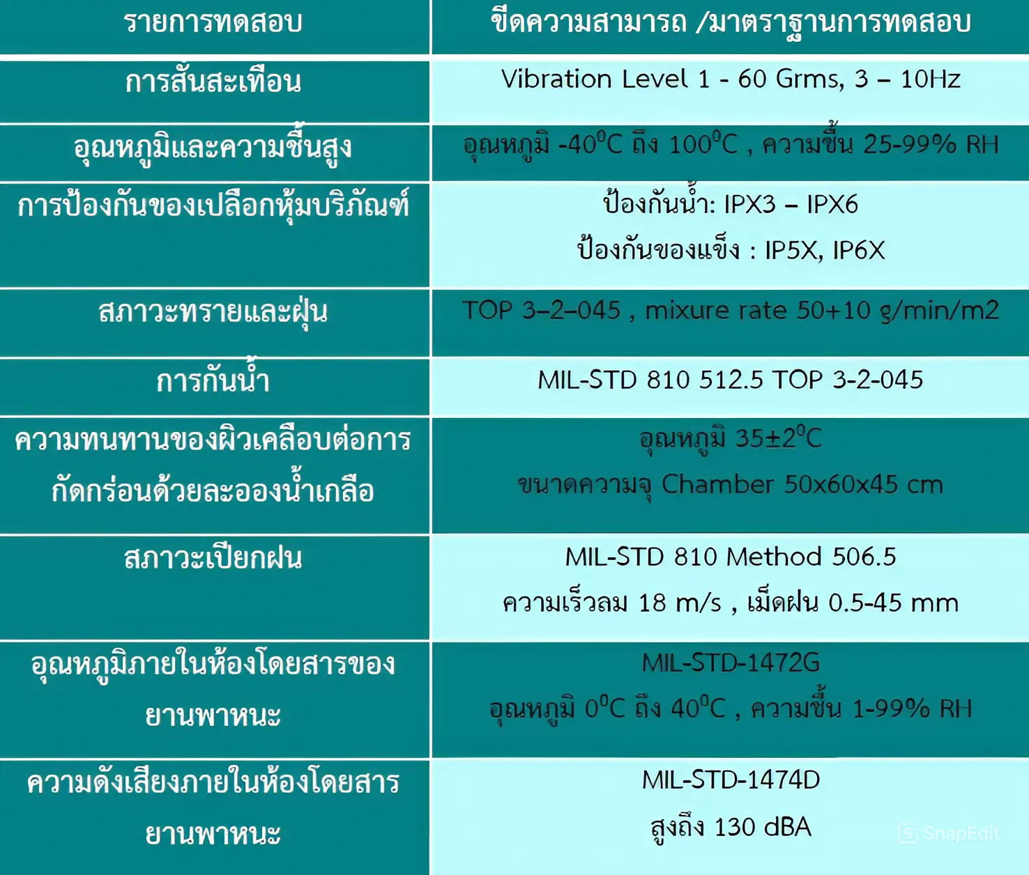 สามารถทดสอบได้หลากหลายสภาวะแวดล้อม